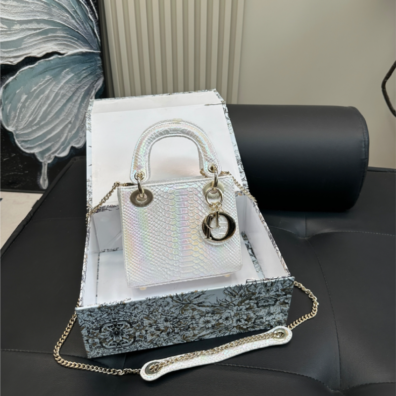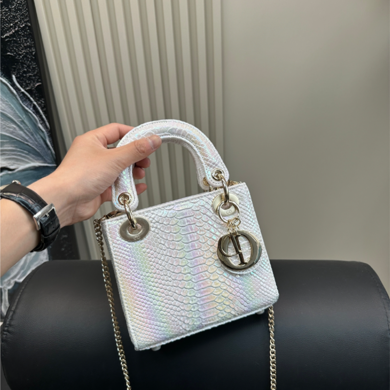 Christian Dior Lady Dior Mini Tote – Iridescent White Python Embossed Leather